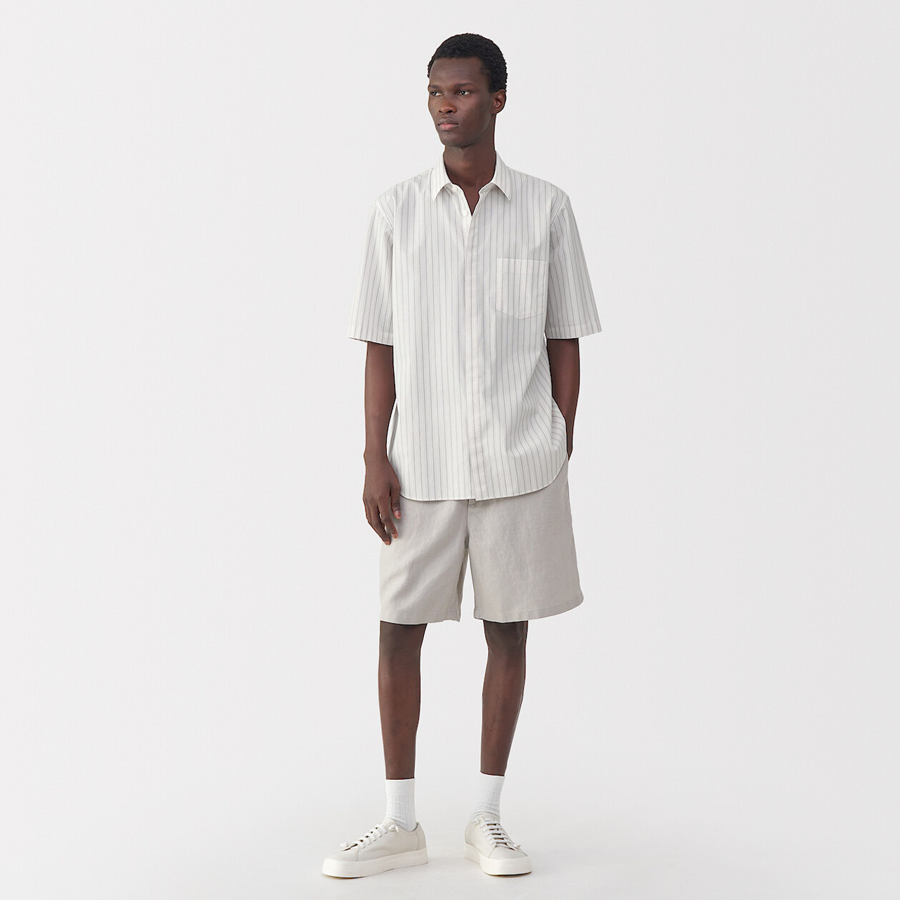 Muji Men’s Washed Linen Shirt White/Raw White/Blue/Navy/Grey Stripes/Navy Stripes | MENS SHIRTS